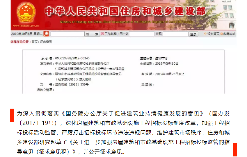 住房和城鄉(xiāng)建設部:進一步加強房屋建筑和市政基礎設施工程招投標監(jiān)管